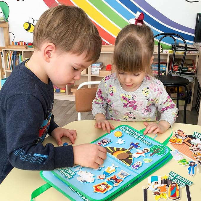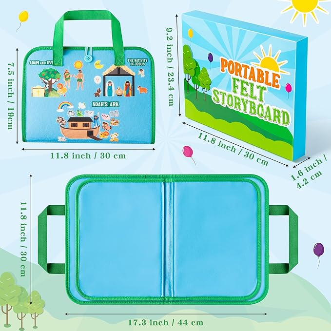 - Amazing Story Kit: Our portable religious zipper storyboard gift set features 6 felt religious story elements. The storyboards are removable and there are 6 felt layouts for us to create at the same time. The interactive felt play set can be decorated over and over again. Great for preschool, interactive time and storytelling.