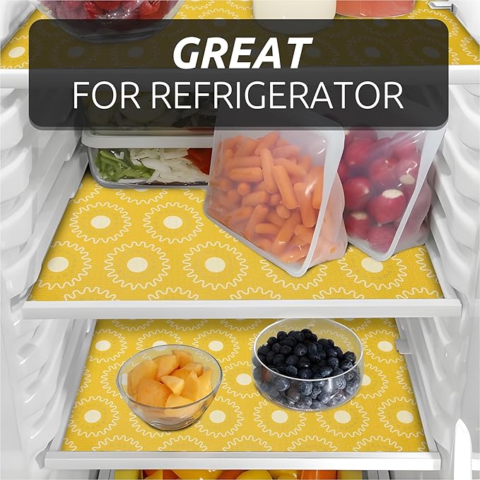 - Excellent Material - The shelf liners are made of excellent PVC material that is non-adhesive and non-slip. To reduce slipping and bunching in your drawers or cabinet shelves, we have added a non-slip texture design on the bottom that increases friction, keeping the liner in place on surfaces and preventing items from moving.