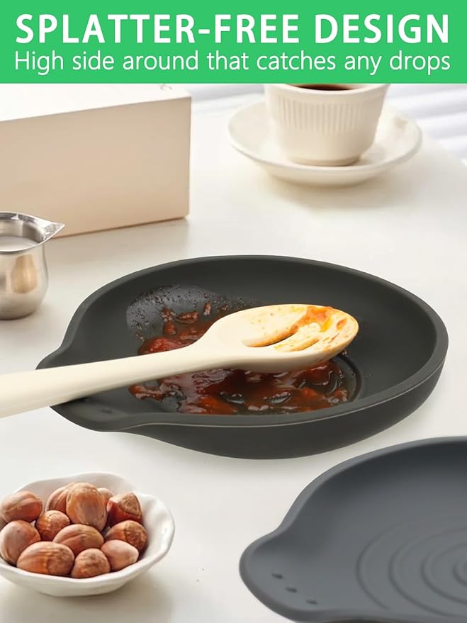 - 【Practical spoon rest set of 2】With this set - (1) gray & (1) black, you have a backup spoon rest for stove top. When one spoon holder is being cleaned, you can immediately replace it. 2-pieces will be more practical, it can meet the needs of different family members, or when cooking multiple dishes.