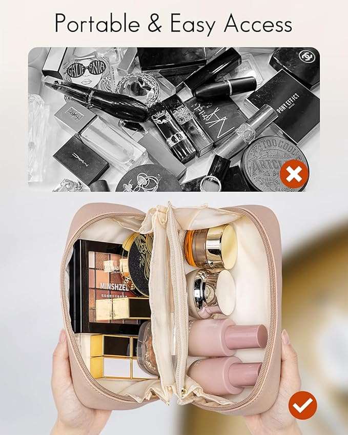 - Roomy Capacity:9x3.7x4.2 inches,This makeup organizer pouch large enough to easily store all your small travel cosmetics,brushes, toiletries, and other travel essentials. Perfect choice for women's makeup bag