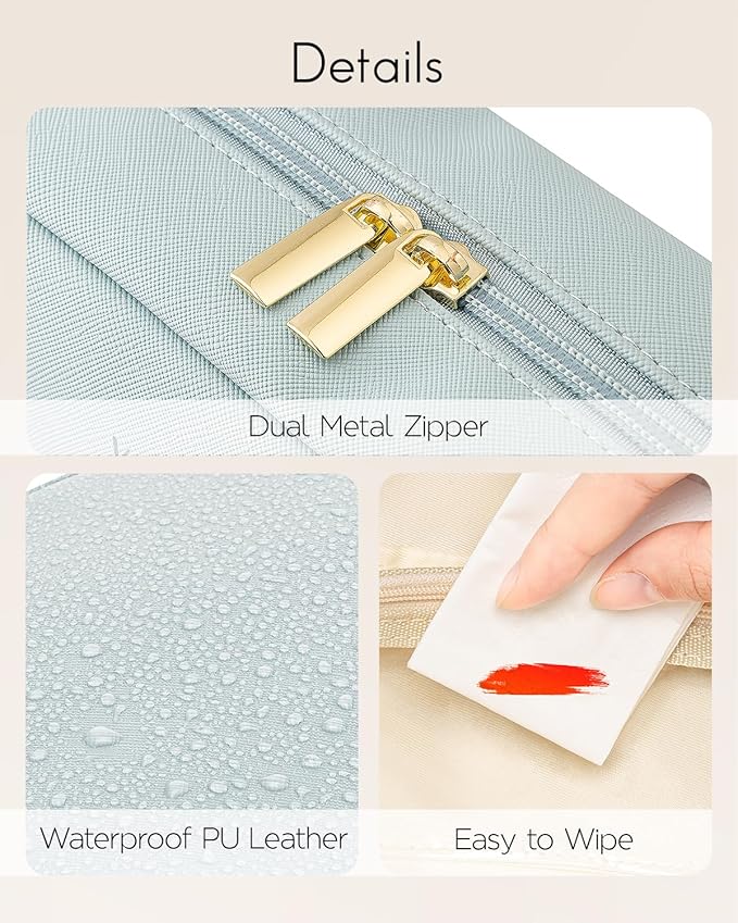 - Easy to Clean:Waterproof PU Leather cosmetic bag equipped with 1 PVC stain-resistant zipper pockets,ideal for store makeup brushes and powder puffs. Simple wipe to keeps them clean