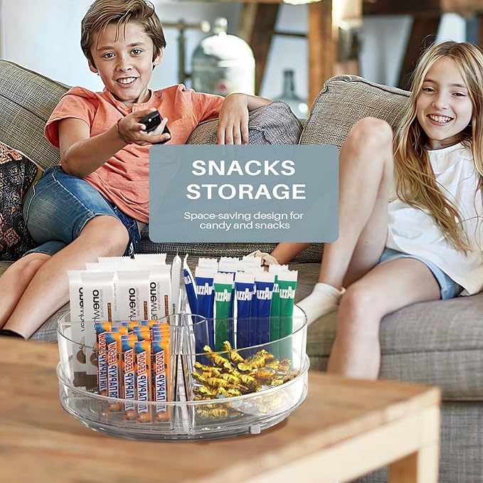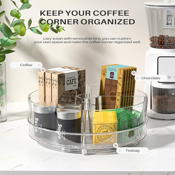- Clear and Functional Design -Our lazy susan turntable features a clear and practical design, allowing for quick and easy item selection. The fridge lazy susan with 4 removable is ideal for organizing small items and preventing clutter. Say goodbye to hard-to-reach places and save time and effort.