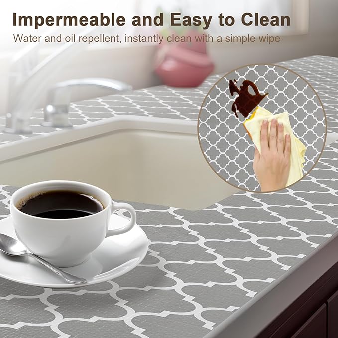 - 【EASY TO CLEAN】Cupboard liner are made of water and oil repellent material, providing excellent protection for drawers and shelves. Easy to clean, wipe gently to restore as new.