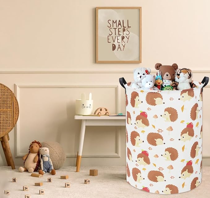 HIYAGON Hedgehog Baby Laundry Basket Baby Hamper for Nursery Girl Kids Pink Hamper Cute Kids Toys Storage Bin Organizer Hedgehog Room Decor for Home(Apple Hedgehog)