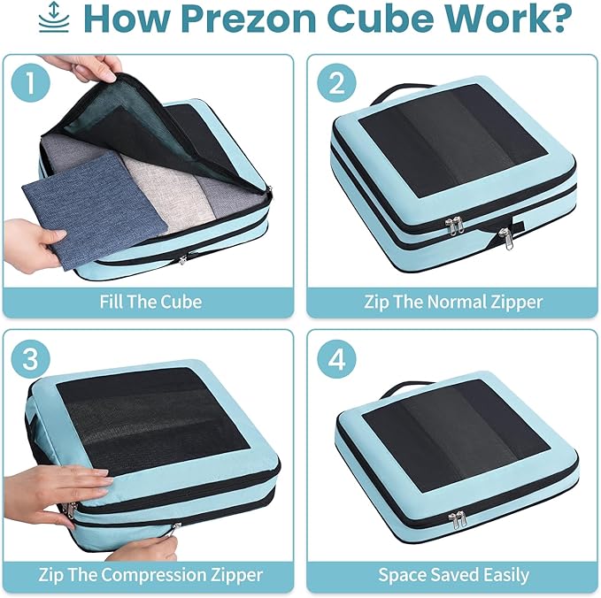 8 Set/6 Set/4 Set Compression Packing Cubes for Travel, Lightweight Vacation Travel Essentials, Travel Accessories for Suitcase Organizer Bags Set, Durable Luggage Organizer