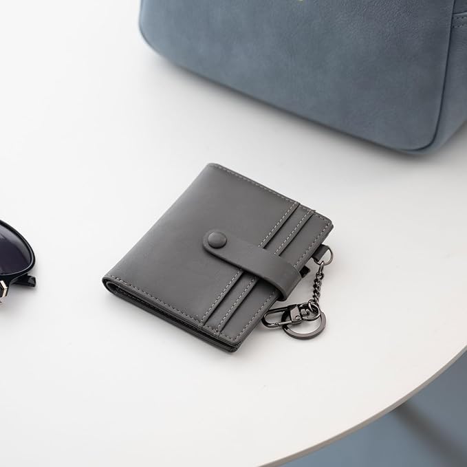 Alldaily Slim Keychain Wallet for Women, RFID Blocking Small Bifold Travel Credit Card Holder (Grey)