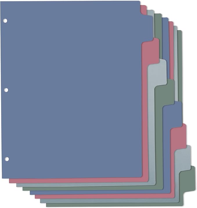 Y YOMA Colored 3 Ring Binder Dividers with Tabs Letter Size Paper Binder Tabs Page Dividers Cute Decorative Binder Index Dividers for Office School Home with 1/8-Cut Tabs, Classic Color(8 Sheet)