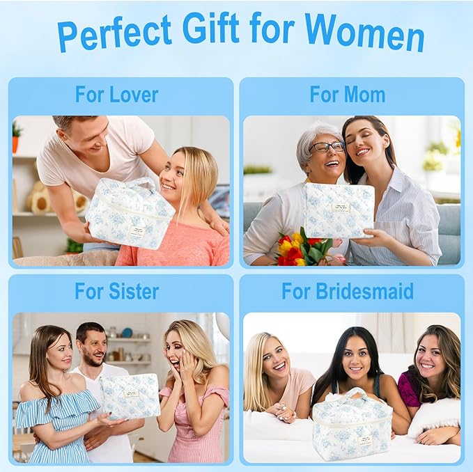 - PERFECT GIFT: The cotton quilted makeup bag is an ideal choice for travel, vacation, school, camping, bathroom organization, and other outdoor activities, is also very suitable as a present for your friends, family or someone else you like. This flip cosmetic bag is the best trendy birthday gift for women and your family