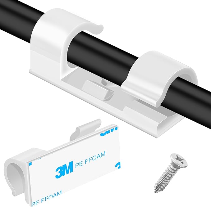 XHF 50pcs Medium Self Adhesive Cable Clips White,Wire Clips Cable Management Wire Organizer Cord Holder for Under Desk, Car, Wall, TV PC Ethernet Cable