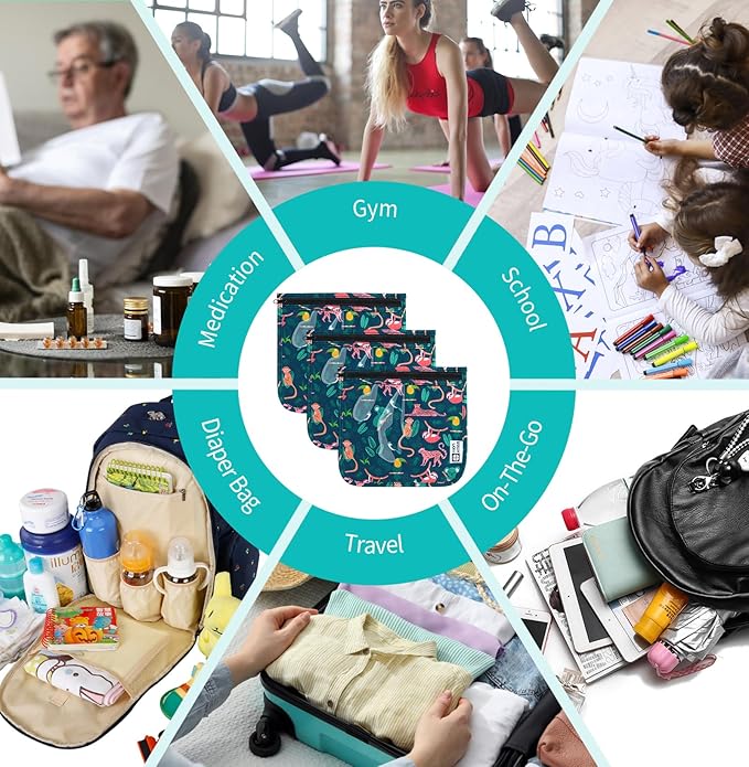 - 100 MORE PURPOSES: Our versatile travel pouch set with playful pattern make your organizing super simple and enjoyable. Compact design in ultra-light takes up very little room in your luggage,playful prints that both kids and adults love! It is perfect to get the clear travel bag for toiletries and cosmetics,also great as a diaper bag organizer to store baby stuff,toys,misc,first aid. Whether home or outing,it is stylish and well-organized