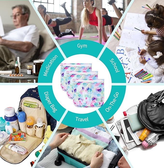 - 100 MORE PURPOSES: Our versatile travel pouch set with playful pattern make your organizing super simple and enjoyable. Compact design in ultra-light takes up very little room in your luggage,playful prints that both kids and adults love! It is perfect to get the clear travel bag for toiletries and cosmetics,also great as a diaper bag organizer to store baby stuff,toys,misc,first aid. Whether home or outing,it is stylish and well-organized