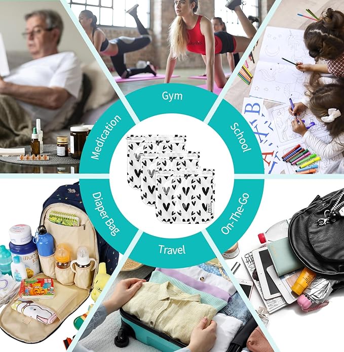 - 100 MORE PURPOSES: Our versatile travel pouch set with playful pattern make your organizing super simple and enjoyable. Compact design in ultra-light takes up very little room in your luggage,playful prints that both kids and adults love! It is perfect to get the clear travel bag for toiletries and cosmetics,also great as a diaper bag organizer to store baby stuff,toys,misc,first aid. Whether home or outing,it is stylish and well-organized