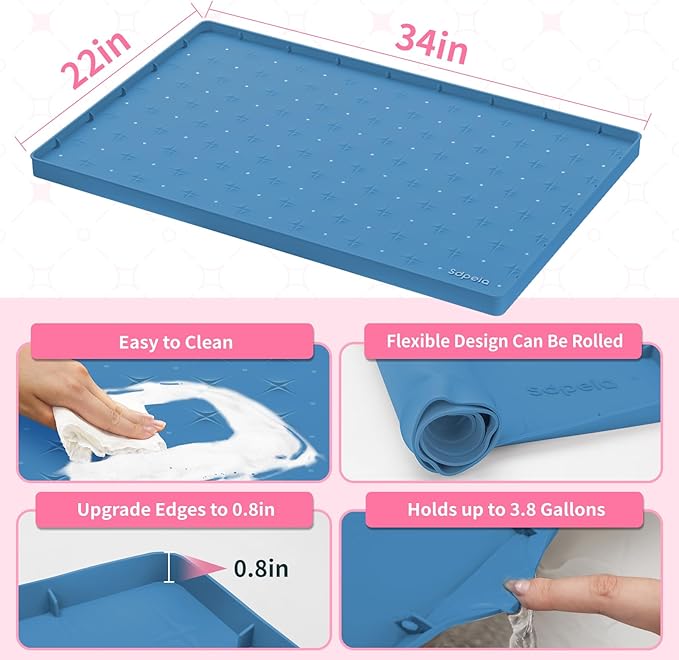 Sdpeia Under Sink Mat 34"×22" Waterproof Silicone Cabinet Liner & Sink Protector for Kitchen & Bathroom, Multi-Purpose Organizers Tray for Pets, Laundry, Cat Litter Mat