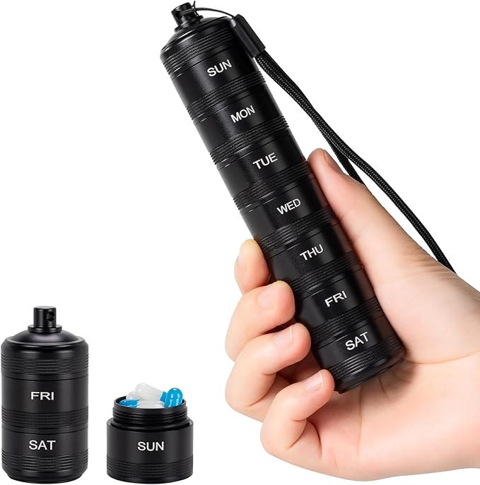 - Quality Metal Materials: Medicine pill organizer is constructed from high-quality materials aluminum. It offer durability, corrosion and resistance structure, making them ideal for travel. They features an anodized for added protection and aesthetic appeal. Precision engineering ensures that all parts fit tightly, providing robustness and longevity.