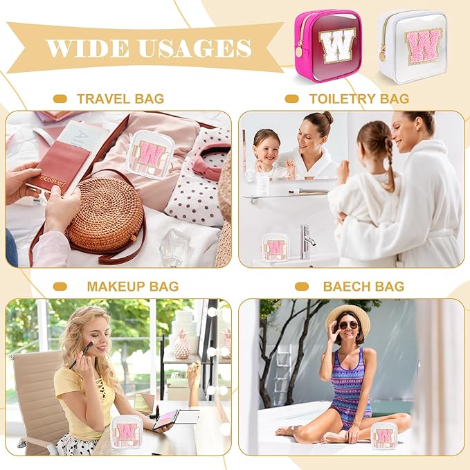 - 【Chenille Letter Patch Bag】Preppy initial makeup bag with professionally sewn chenille letter patches. You don't have to worry about them falling off. With its waterproof nylon & PVC design and unique glitter A-Z initials, it will surely stand out from all your makeup bags, brighten your mood and highlight your personality.