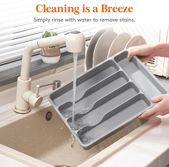 - Safe PP Material: Crafted from sturdy food-grade PP material, our silverware container with lid withstands daily wear and tear. It is BPA-free, ensuring the safety of all types of cutlery. Cleaning is a breeze - simply rinse with water to remove stains