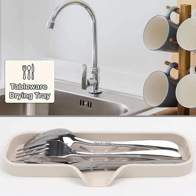 - ★Prevent Items From Sliding: The Silicone Sink Tray has a raised edge and an anti-skid base that prevent your items from sliding or falling off. You can keep your soap or sponge securely and firmly in place without worrying about them slipping into the sink or onto the floor.