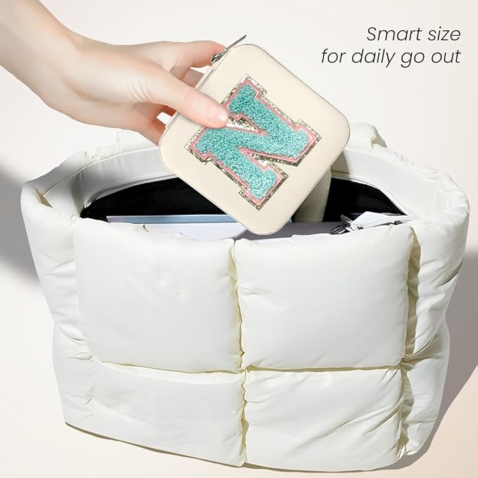 SANDJEST Personalized Jewelry Box, White Travel Jewelry Box with Initial N, Small Monogrammed Jewelry Case Organizer for Girls Women Teen Kids, Mini Travel Essentials Gifts for Birthday Christmas