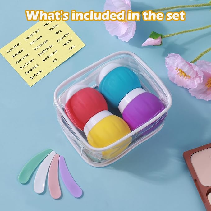 - Travel Size Cosmetic Containers: Our set includes 4 travel-ready silicone cream jars, each in a different color. This helps you easily identify which product is stored in each container. So versatile that you could use for cosmetics, vitamins, toothpaste tablets, jewelry etc.