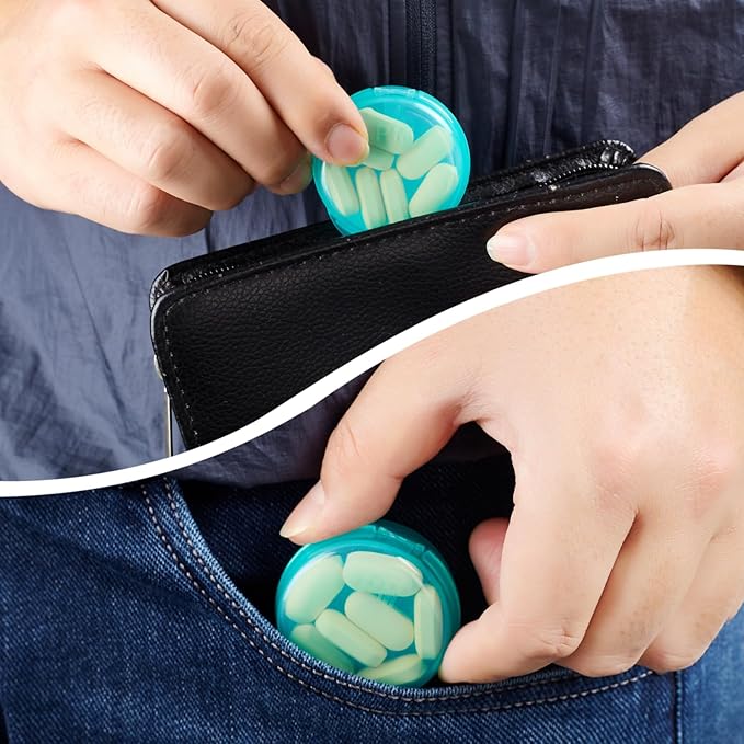 - SMALL SIZE & LARGE CAPACITY - This 2-layer pill box is about 1.77 x 1.77 x 0.9 inches in size, small and light, which is very suitable for travel. The mini medicine box has two compartments, each layer can hold up to 4 fish oil or 7 macrovitamins. You can easily put the AM PM pill case in your wallet, handbag, pocket and briefcase, which is a must for travelers and workers who need to take pills every day.
