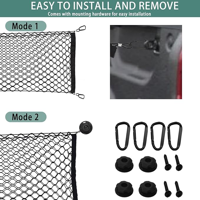 - SAFE AND TIDY: It can secure small items such as groceries, shopping bags, tools, etc. to the trunk bed, and even larger bags and suitcases between the tailgates, preventing items from sliding or being damaged during transportation, providing you with a safe and tidy trunk.