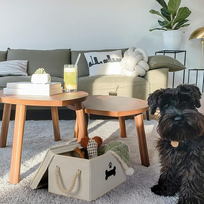 Dog Toy Basket with Lid, Dog Basket for Toys, Dogs Toy Box with Cotton Rope Handles, Collapsible Storage Bins for Pet Toys, Dogs Storage Organizer, Beige