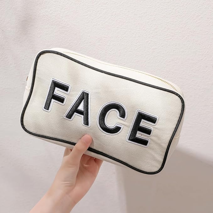 - [Reusable And Durable Canvas Bag]: Sturdy metal zipper, fine workmanship, makes cosmetic bag smoother and easy to pull and adds a touch of elegance.Perfect neutral bag for year round use make it matching set! This canvas small bag is made of high quality material soft canvas, very light and durable for daily use.