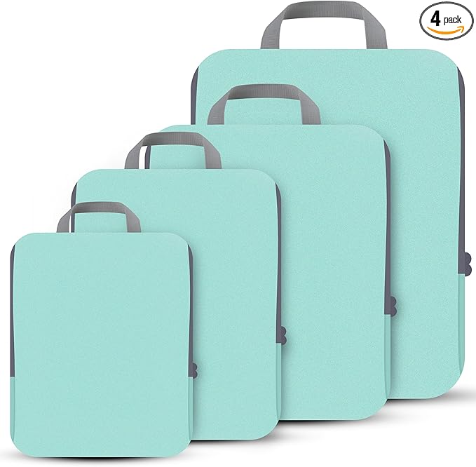 4 Set Compression Packing Cubes Travel - Travel Accessories Expandable Packing Organizers for Carry On - Essentials Luggage Bags - Light Teal