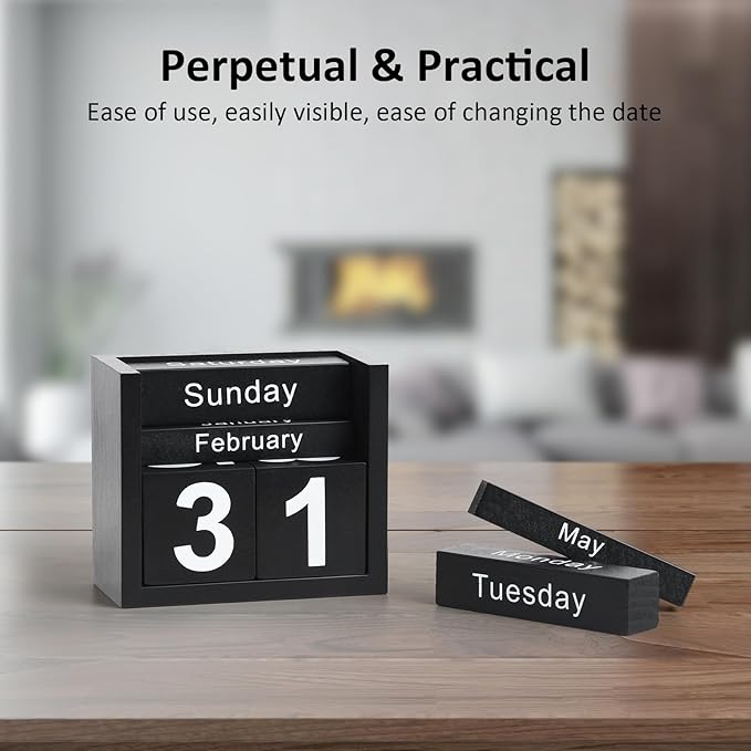 - Perpetual & Practical - Constructed with sturdy wooden blocks and has a classic look. The perpetual calendar sits stably and nicely on your desk, helps you remember and track the date, pleasant to the touch, reusable yearly, and will last a long time.