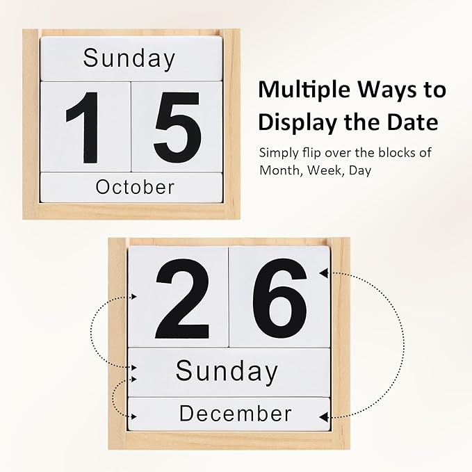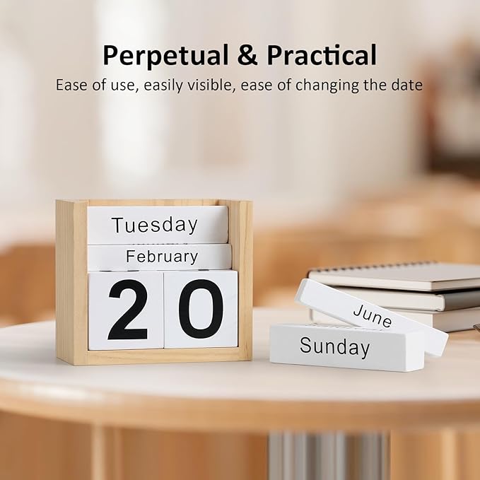 - Perpetual & Practical - Constructed with sturdy wooden blocks and has a classic look. The perpetual calendar sits stably and nicely on your desk, helps you remember and track the date, pleasant to the touch, reusable yearly, and will last a long time.