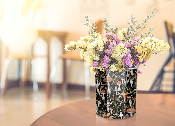 WAVEYU Desk Pen Holder, Ceramic Pencil Cup, Cute Makeup Brush Holder, Desktop Supplies and Accessories for Women Students, Office Home Art Supply Caddy, Mushrooms Pattern