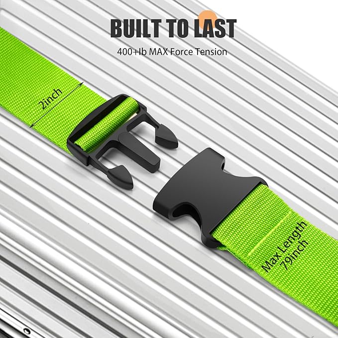 - Do you like to push your bags to the limit? With a max force tension of over 400lbs, our heavy duty luggage straps make sure that your stuff stays in your bag, right where it belongs! No more fear of violent transportation at airports. Crafted from top-grade materials, which offer exceptional durability and strength. Our luggage straps are built to withstand the toughest travel conditions.
