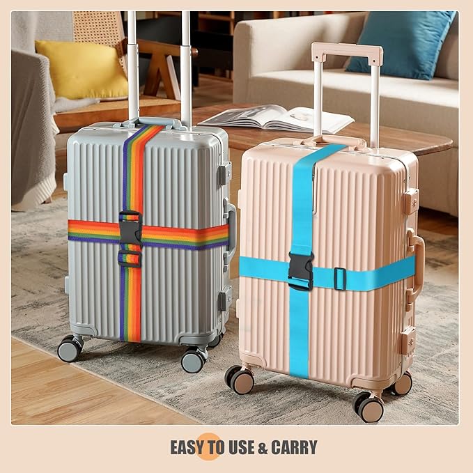 - Includes 4 straps, good for up to 2 pieces of luggage. Wrap one around the top of your bag. Wrap one around the side of your bag. Pull em’ tight and you’re all set!