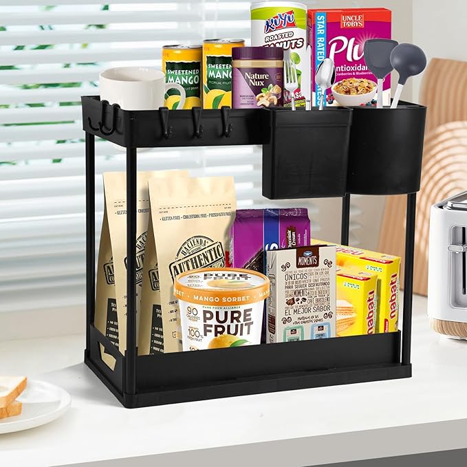 2-Pack Under Sink Organizer – 2-Tier Sliding Storage Rack for Bathroom & Kitchen, Pull-Out Under Cabinet Organizer for Bathroom Organizers and Storage (Black)
