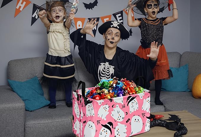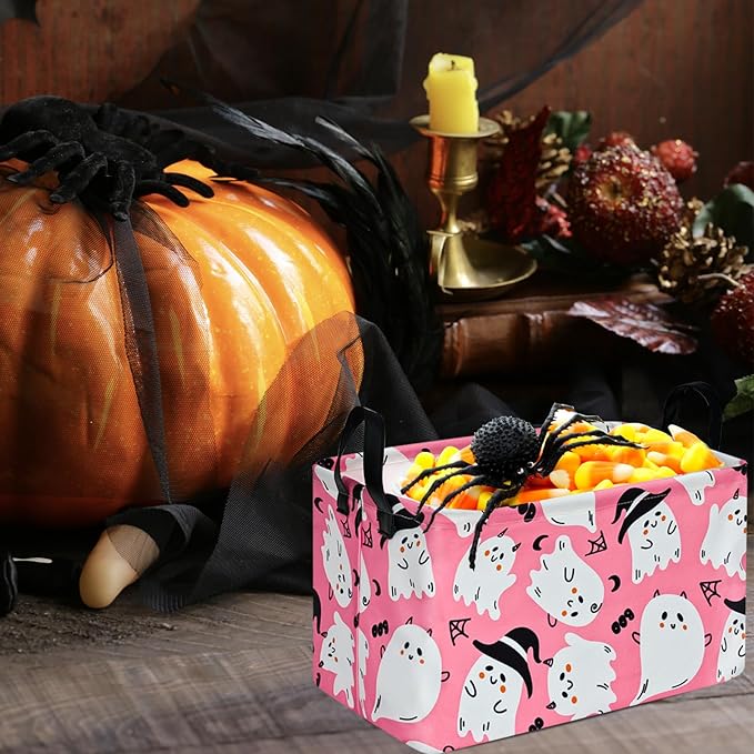 - Storage Basket: This Pink Ghost Pattern Halloween Gift Storage Basket features a playful ghost design in a soft pink shade, adding a whimsical touch to your holiday décor. This festive pattern makes it an ideal Halloween gift basket and a fun decorative piece for your bedroom or living room.