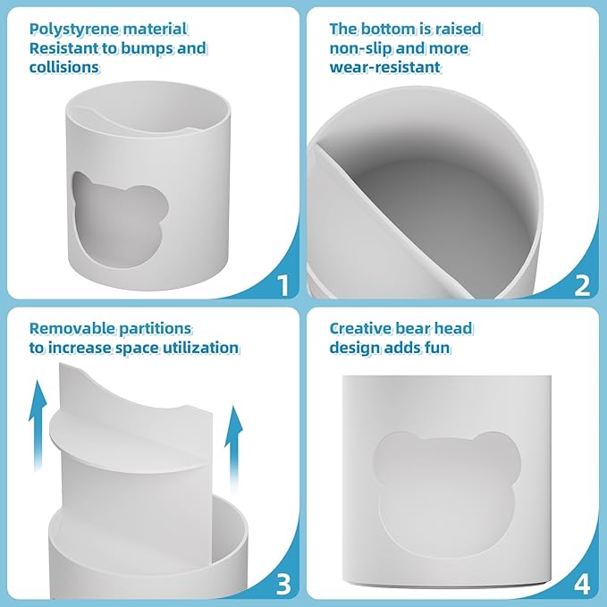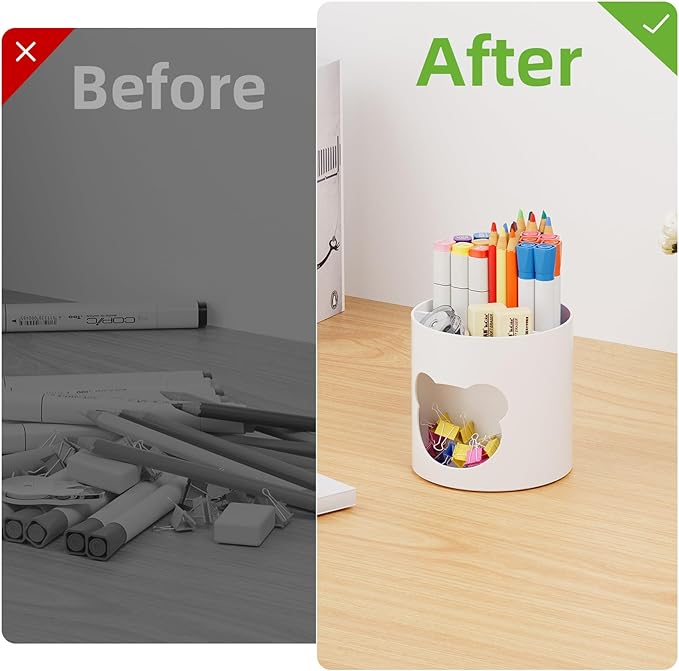 - 【Large Capacity Pen Holder】The dividers inside the desktop pen holder are removable, allowing the space of the pen holder to be used multifunctionally. The bear head storage compartment is designed to store small items. It is ideal for creating a tidy workspace
