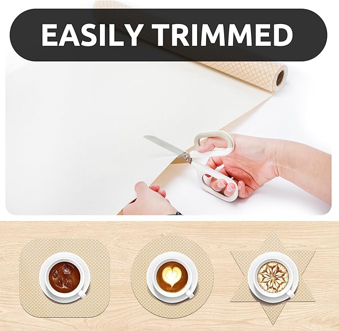 - Elegant Design - The differences of shelf liner between ours and the others is appearance designs. We will take into account the needs of customers for aesthetics. Therefore, to instead of regular plain shelf liners, we thought about European style design, use our shelf liner to decorate your refrigerator, shelf, kitchen, bathroom.