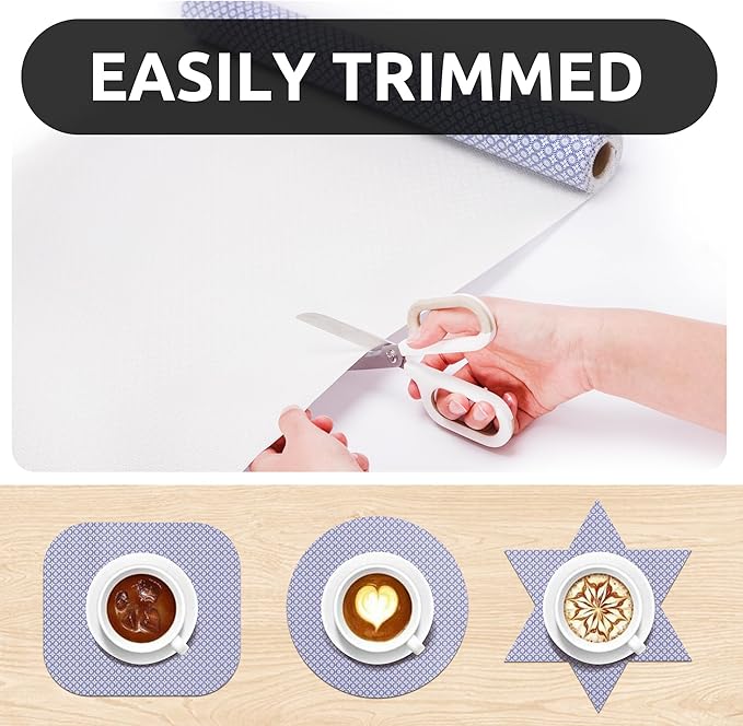 - Elegant Design - The differences of shelf liner between ours and the others is appearance designs. We will take into account the needs of customers for aesthetics. Therefore, to instead of regular plain shelf liners, we thought about European style design, use our shelf liner to decorate your refrigerator, shelf, kitchen, bathroom.