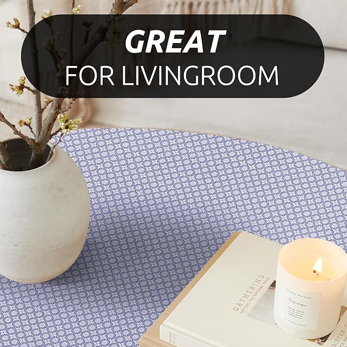 RAY STAR 18X96 Inch Shelf Liner for Kitchen Cabinets, Non-Adhesive Cabinet Liner Washable, PVC Drawer Liner for Dresser Non-Slip Bathroom (Blue Circle)(5 Roll)