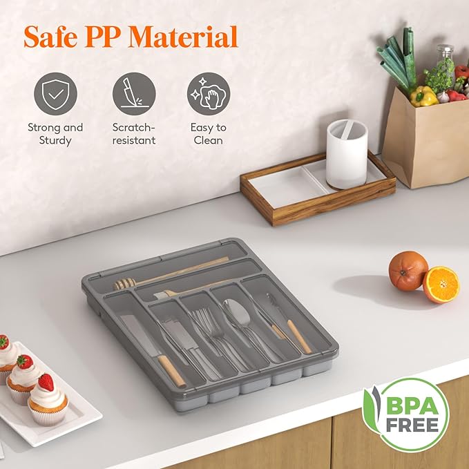 - Dust-Proof Lid Design: Our silverware organizer with lid features a transparent lid that shields your flatware from dirt, ensuring it remains pristine in your kitchen drawer. The lid is removable for easy cleaning and its transparency allows for quick visual checks