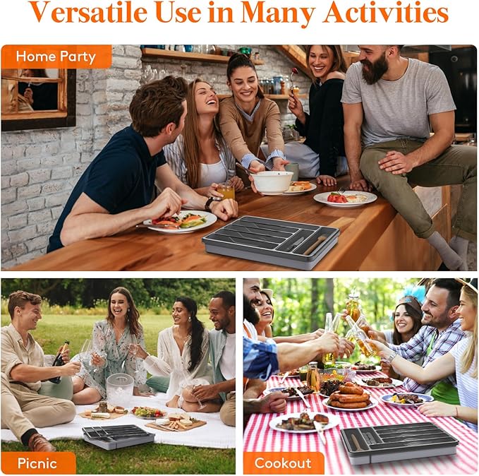 - Versatile Use: Beyond organizing kitchen utensils, this covered silverware tray is versatile to store stationery, cosmetics and small gadgets. Its compact size and snug lid make it ideal for various occasions, including home gatherings, picnics, camping