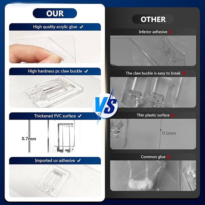 - High Quality: Our shower caddy adhesive replacement are made of crystal-clear PC material and feature upgraded adhesive for strong adhesion without leaving marks or falling off easily,no drilling.