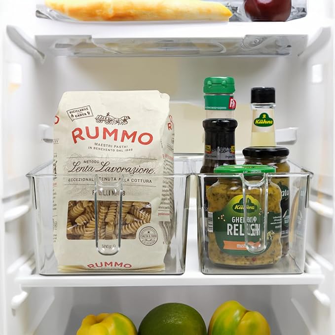 2pcs Clear Kitchen Storage Bins, pantry organizers and storage, Small Clear Containers for Organizing, Fridge Organizer, Cabinet Shelf Storage Bins (M+S)