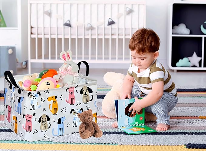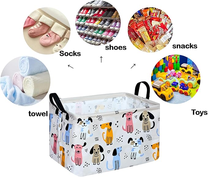 Rectangle Gift Storage Basket Home Shelf Storage Basket Organizer Box Clothes Laundry Hamper Nursery Basket Laundry Basket with Handles (Dog)