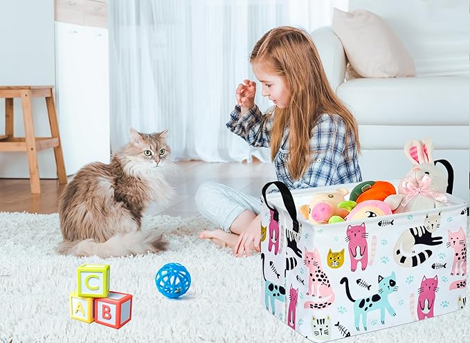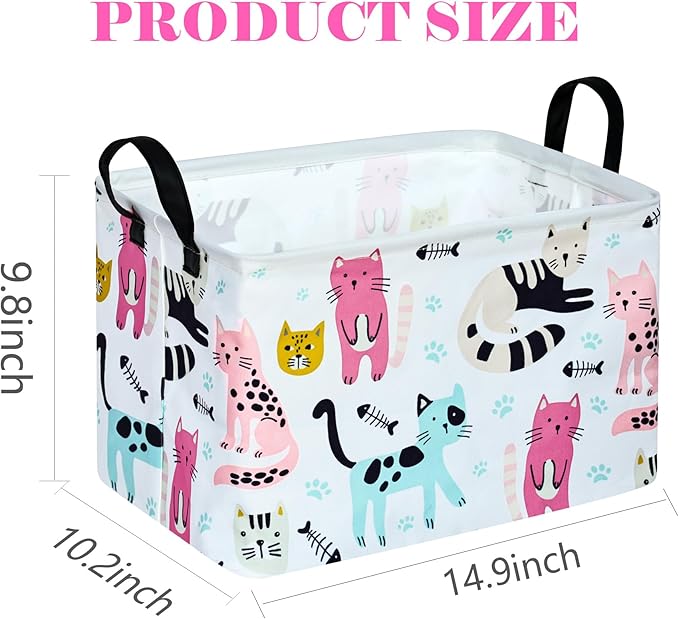 Rectangle Gift Storage Basket Home Shelf Storage Basket Organizer Box Clothes Laundry Hamper Nursery Basket Laundry Basket with Handles (Cat)