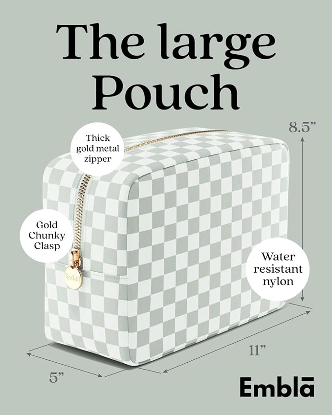 - TRAVEL + CUTE = EMBLA! - Our bags are THE trendy & preppy storage gifts! Simply pick your size (Mini, Large or XL) and start organizing all of your makeup, lipstick, hair stuff, snacks and jewelry accessories! Or use it as a clutch handbag, makeup brush holder, skin care bag, zippered carry case or coin purse wallet!