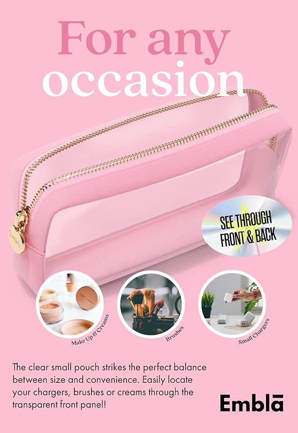 - EMBLA, TRUSTED BY THOUSANDS - Join our huge community who all rave about the superior quality of our products. Looking for a large makeup bag for organization, a small makeup bag for purse or super cute travel pouches? you're in the right place! These bags also make for a great gift for birthdays, bridesmaids, Valentines Day, Mother’s day, Christmas, teacher appreciation and other special occasions.