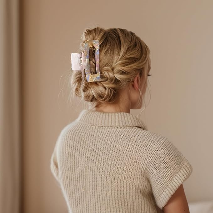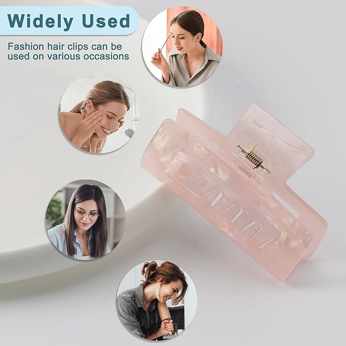 VOCOSTE Hair Caw Clips, Acetic Acid Hair Clips, Tortoise Hair Clips, Large Hair Claw Clips, Hair Barrettes for Women, Pink