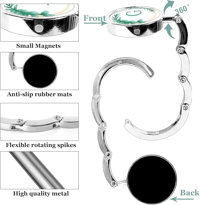 - CREATIVE LETTERS: Purse holder front disc is decorated with personalized letter stickers and printed floral pattern, unique and personalized, making purse hanger a perfect accessory for travel. Perfect gift choice for all girls and ladies. It makes a nice little gift for all kinds of holidays such as birthdays, anniversaries, Mother's Day and Valentine's Day.