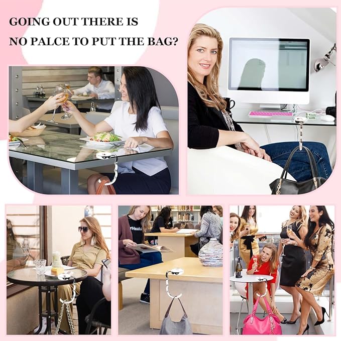 - KEEP CLEAN: Folding handbag hanger can keep your bag clean, you don't need to put your bag on dirty floor or crowded chairs, unfold the purse hook and put it on the edge of the table or stool, keep your bag or purse safe in the restaurant, office or anywhere.
